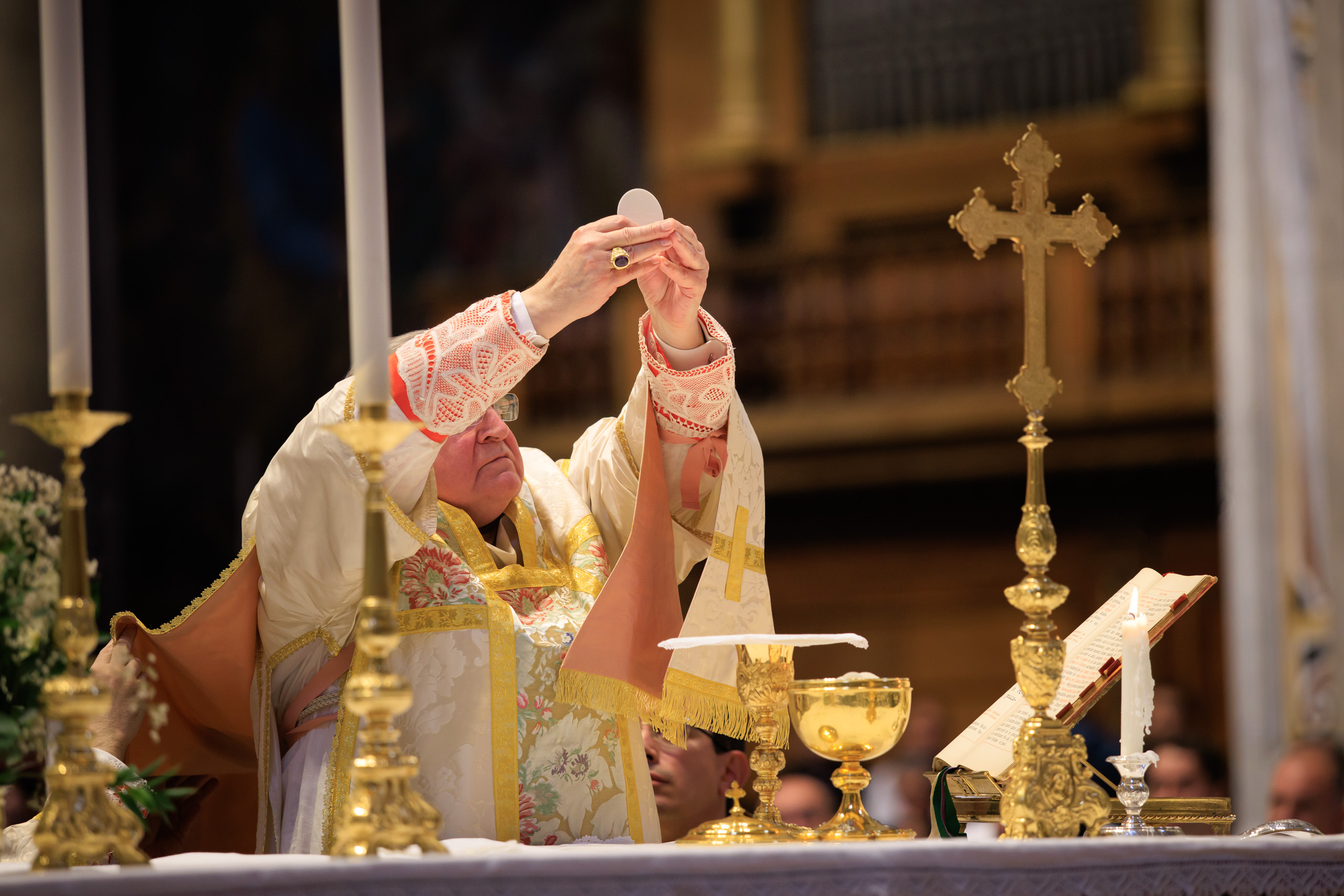 Na kraju svete Mise dogodila su se dva vrlo upečatljiva trenutka, prvi, kada su se bazilikom prolomili stihovi antifone “Christus Vincit, Christus regnat” koju je pjevalo nekoliko tisuća grla, a drugi trenutak, kada se prisutnima sasvim nenadano obratio 97-godišnji “živi mučenik”, albanski kardinal Ernesto Simone (koji je robijao 18 godina u Hoxhinom kazamatu., a u tom periodu slavio je svetu Misu po tradicionalnom rimskom obredu po sjećanju, jer mu liturgijske knjige u zatvoru nisu bile dostupne). On je na latinskom izmolio tzv. egzorcizam sv. Mihaela (molitvu pape Lava XIII.), koja se u tradicionalnom rimskom obredu moli nakon svake tihe Mise. Ta molitva egzorcizma nosila je posebnu težinu, jer su se vrlo nedavno u Bazilici dogodila dva svetogrdna čina, prvo defile sodomitskih aktivista, a nedavno i ovaj žalosni slučaj, radi kojeg je nekoliko dana kasnije izvršen pokornički obred zadovoljštine.