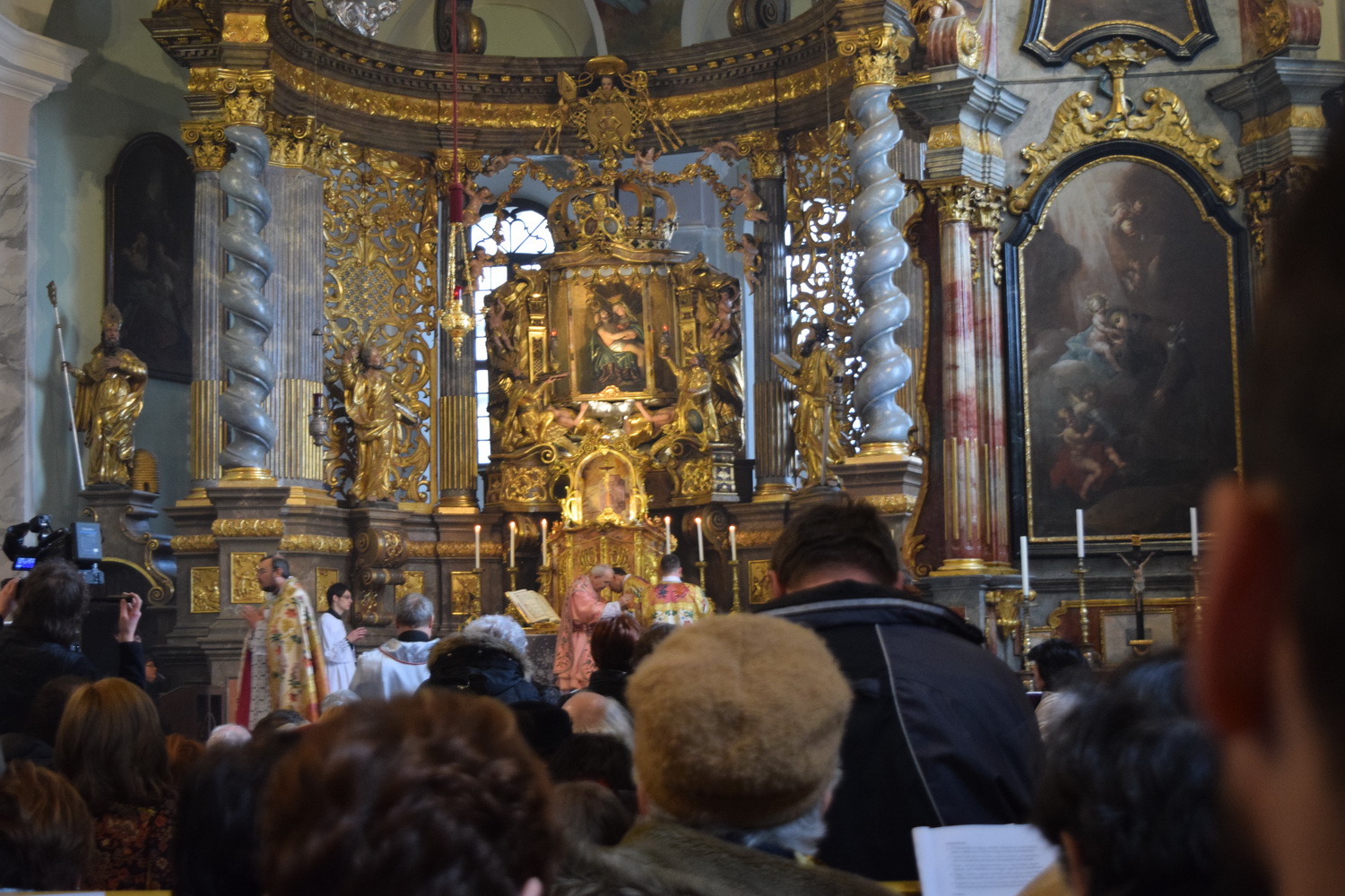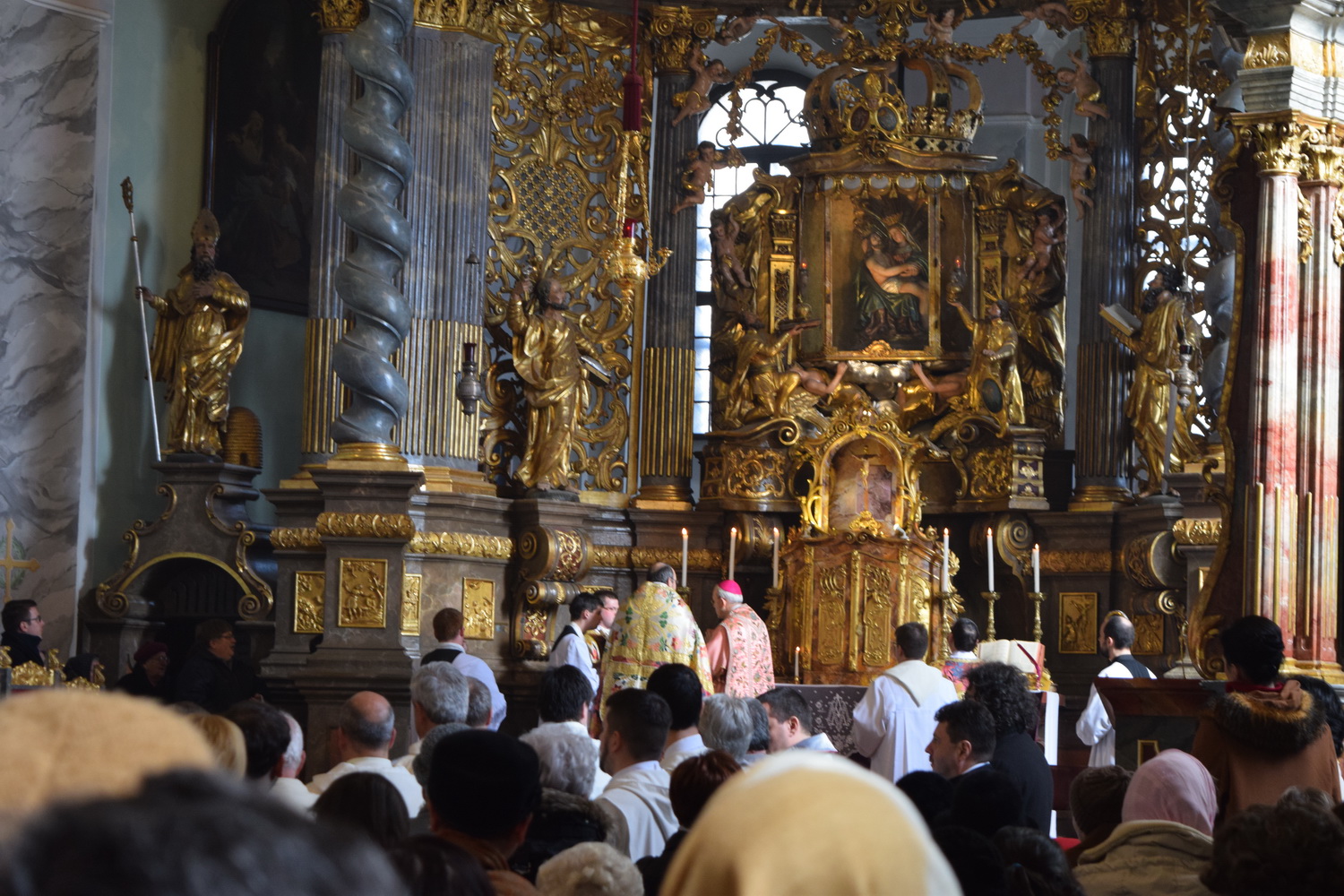 Neumorni mons. Schneider prošloga tjedna je tri dana boravio u Mađarskoj, gdje je na poziv katoličkog Centra za obrazovanje John Henry Newman slavio Mise, i sudjelovao u brojnim drugim aktivnostima. Posljednjeg dana njegovog posjeta, mons. Schneider je slavio pontifikalnu Misu u hrvatskom susjedstvu, u gradu na balatonskoj obali, Sümegu. Svetoj Misi je nazočila i skupina vjernika iz Hrvatske, od kojih su se neki nedavno u Ljubljani imali prilike i osobno susresti s monsinjorom. Misa je slavljena u veličanstvenoj crkvi Pohoda BDM, koja je taj dan bila tijesna za stotine vjernika koji su je ispunili do posljednjeg mjesta. Kako je ta nedjelja bila tzv. “Laetare” (4. korizmena, naziv je dobila po prvim riječima ulazne pjesme Mise toga dana, “Laetare Jerusalem” – “Veseli se Jeruzaleme”), misno ruho je toga dana bilo ružičaste boje, što je uz izvrstan zbor Schole Sancti Pauli dodatno uzveličalo ovaj radostan dan, a neposredno prije početka Mise, snažno sunce je okupalo zidove crkve. Ministri Sacri (klerici poslužitelji) su bili župnici iz triju mađarskih gradova. Zanimljivo, prije tradicionalne pontifikalne Mise slavljena je redovita Misa po novom obredu (Novus Ordo), ali također ad orientem (prema istoku, tj. oltaru). U nastavku možete vidjeti nekoliko fotografija.