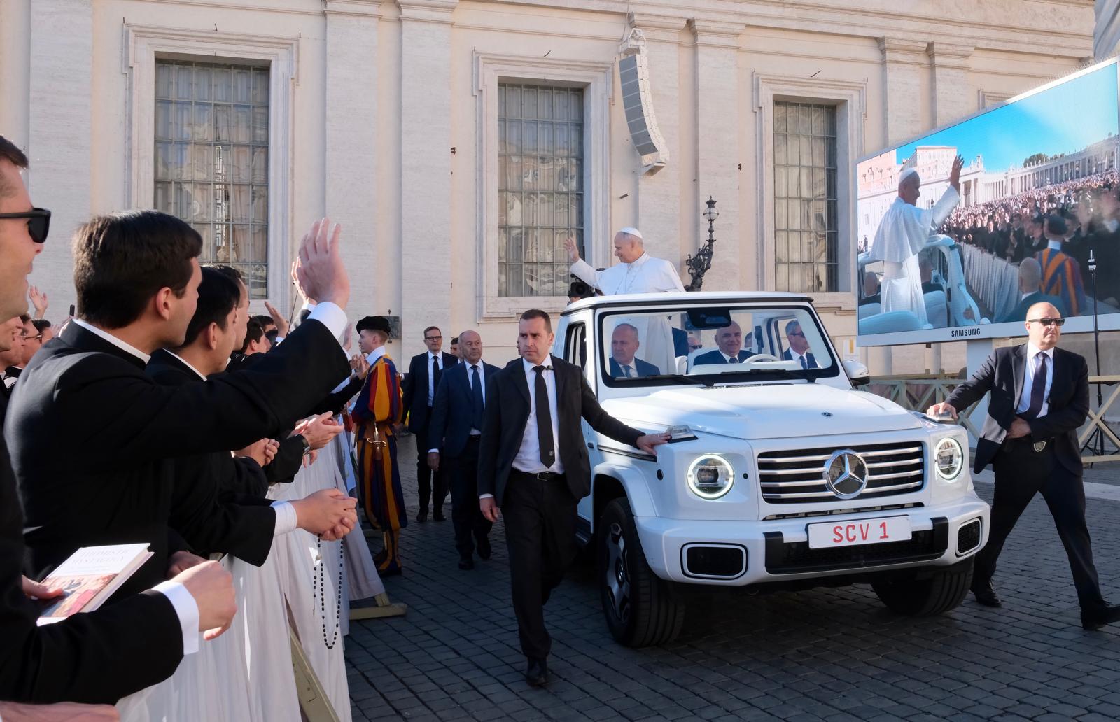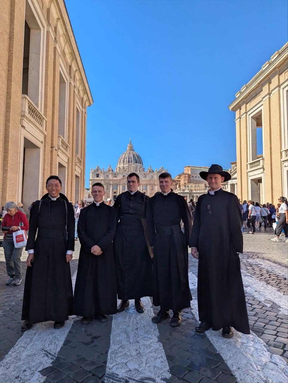 Od 4. do 10. listopada, bogoslovi viših godina Svećeničkog bratstva sv. Petra (FSSP) iz Wigratzbada (uključujući i naše bogoslove Stjepana i Vedrana) pridružili su se svojim kolegama iz američke FSSP bogoslovije u Dentonu u Rimu na jubilejskom hodočašću Družbi apostolskog života. To im je omogućilo da prisustvuju papinskoj audijenciji, gdje je vlč. Joseph Lee (FSSP) imao milost osobno se susresti s papom Lavom XIV. Dok su bogoslovi pjevali “Tu es Petrus”, imao je priliku obećati Sv. Ocu njihove molitve i ponuditi mu palu s motivom Majke Božje Guadalupske za žrtvu svete Mise.