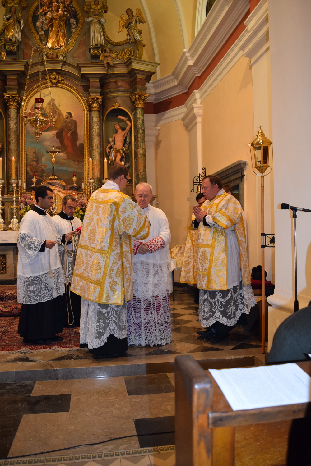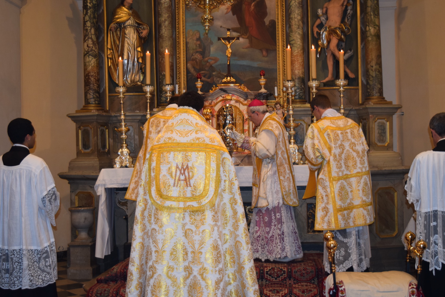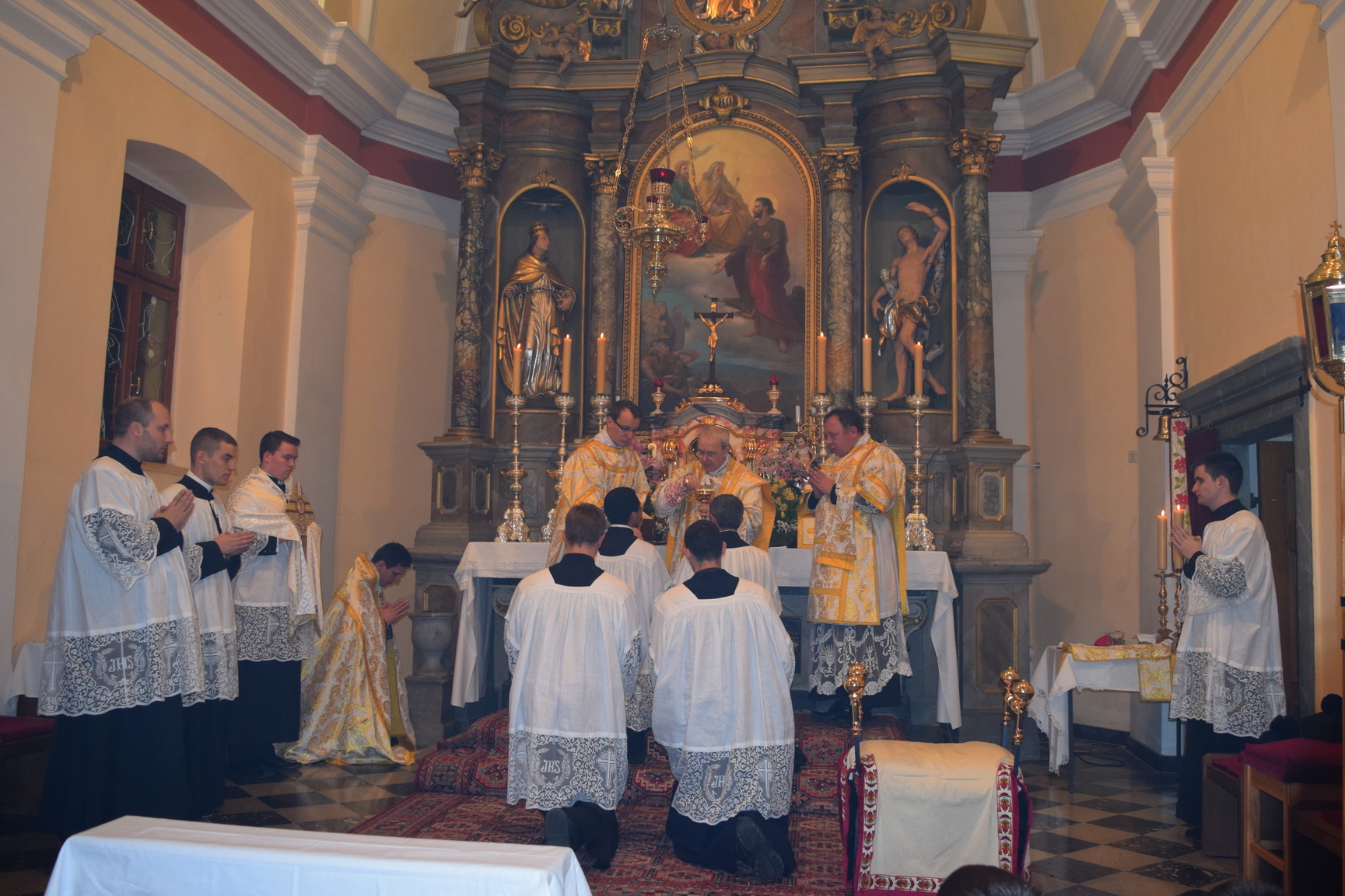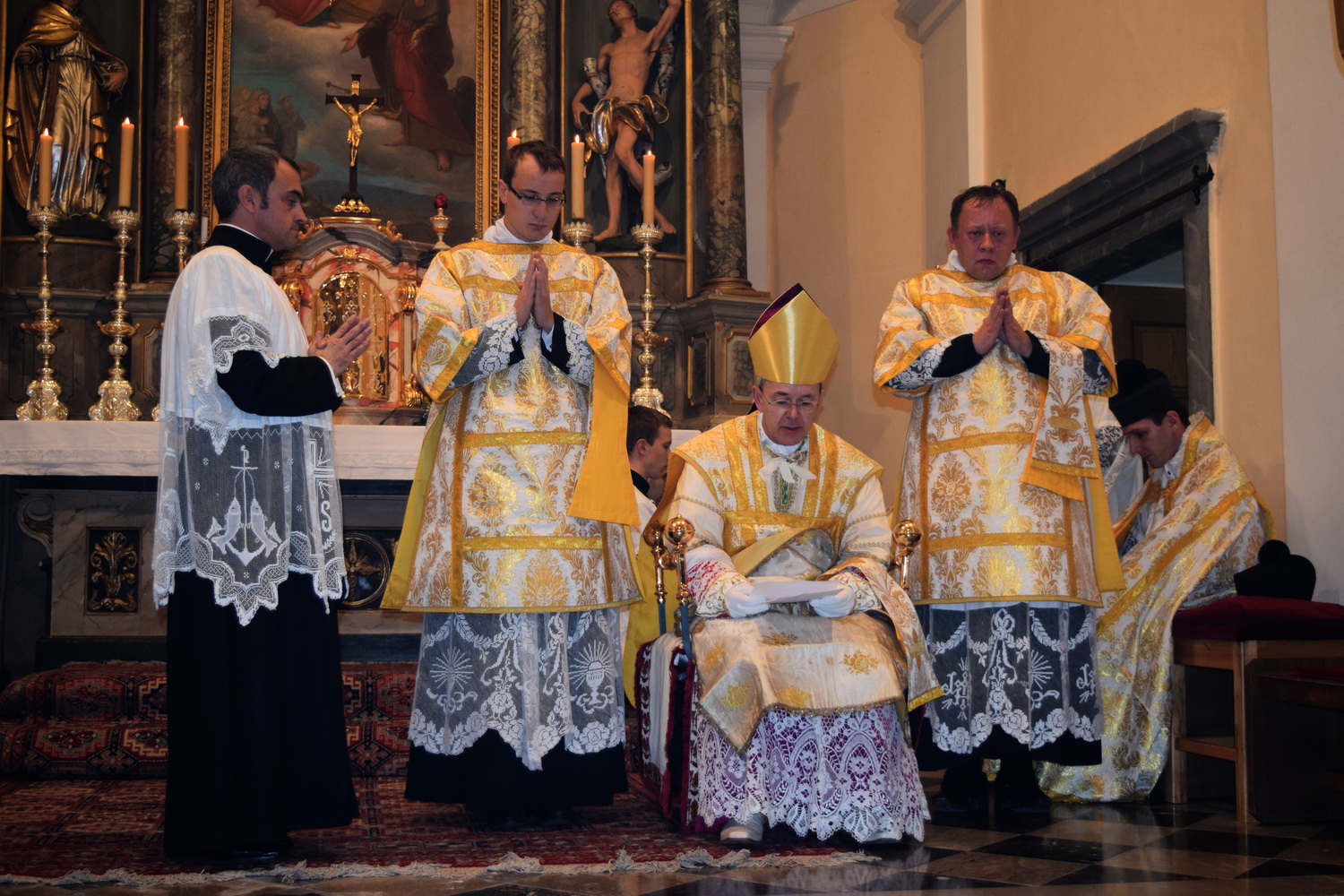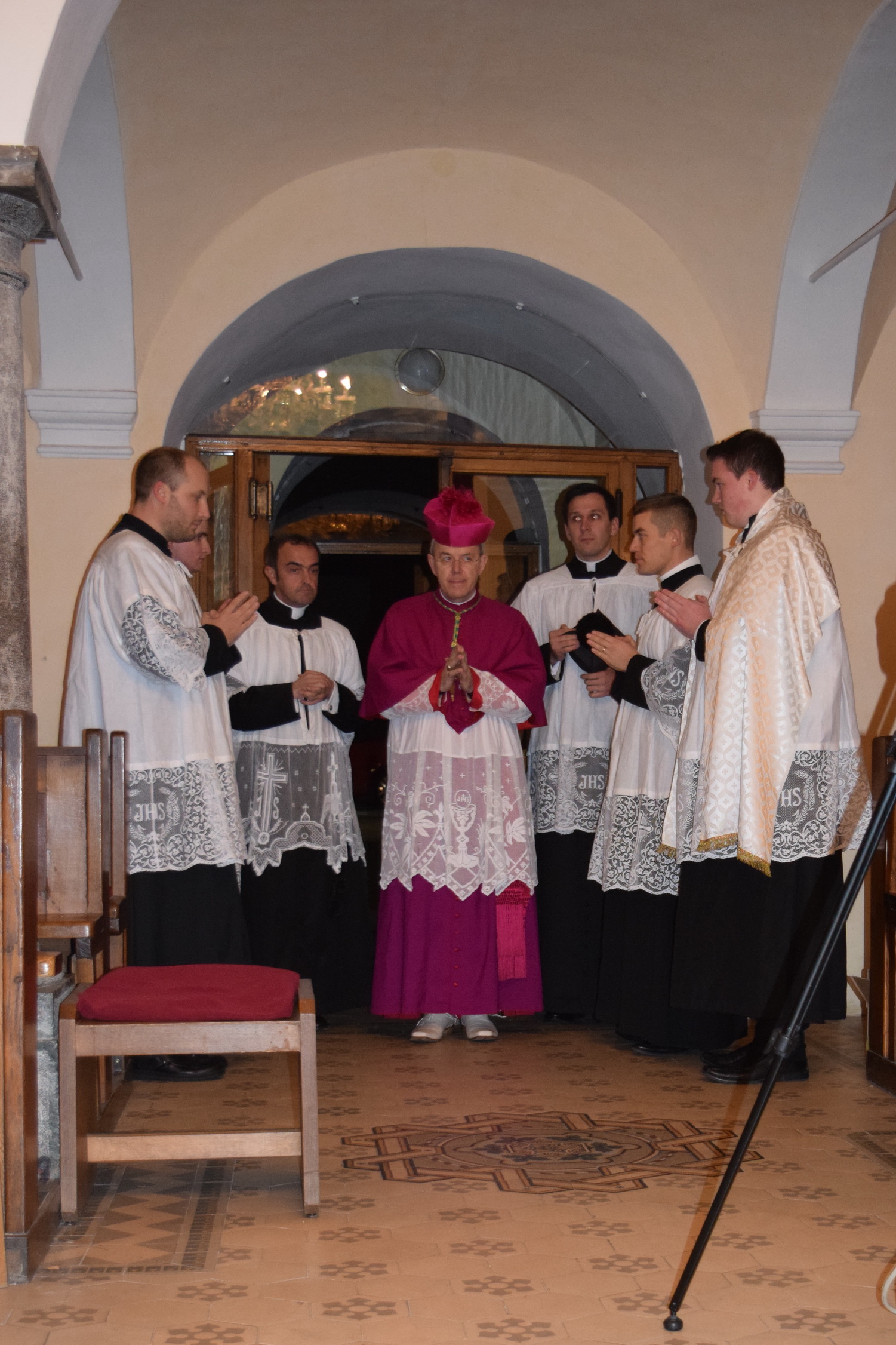 Kako smo to prethodno najavili, monsinjor Athanasius Schneider je na poziv udruge Juventutem Slovenija (udruga koja okuplja mlade katolike privržene tradicionalnoj rimskoj liturgiji) bio u trodnevnom posjetu Ljubljani, gdje je održao predavanje s tematikom Svete Pričesti, predstavio svoju knjigu “Corpus Christi”, koja je nedavno izdana u slovenskom prijevodu, te je dva dana služio svetu Misu. Vrhunac njegovog posjeta bila je svečana pontifikalna Misa u četvrtak, 19. studenog. U priloženoj galeriji možete pogledati kako je izgledala ta uistinu veličanstvena liturgija, koja je u Sloveniji slavljena nakon više od pedeset godina. Misu je pjevanjem popratio izvrstan zbor, sastavljen od profesionalnih pjevača. Crkva je bila ispunjena do posljednjeg mjesta. U propovijedi, čiji ćemo tekst nadamo se, uskoro moći pročitati na našim stranicama, biskup Schneider je govorio o mučeništvu, te je istaknuo opći poziv na svetost, na što nas naročito poziva i Konstitucija 2. vatikanskog sabora, “Lumen Gentium”. Nakon svete Mise, svi prisutni vjernici imali su priliku primiti osobni blagoslov od monsinjora. Mons. Schneider je vrlo toplo primljen u Sloveniji, a interes za njegov posjet pokazali su i vodeći katolički mediji (vidi ovdje i ovdje), a o tome je izvjestila i Slovenska biskupska konferencija. Prilikom posjeta, mons. Schneidera je osobno pozdravio i ljubljanski nadbiskup, mons. Stanislav Zore. Osim mons. Schneidera, u ta tri dana, svete Mise po tradicionalnom obredu služio je u Ljubljani i naš veliki prijatelj, pater Krolikowski iz Instituta Dobrog Pastira, a ujedno je na pontifikalnoj Misi obavljao službu podđakona (također, jedan od ceremonijara bio je đakon iz IBP-a). Slovenski kolege iz udruženja Juventutem uistinu su se potrudili da cijeli posjet prođe u savršenom redu, i na tome im treba odati veliko priznanje. Prilikom ove svete Mise, te u druženjima prije i nakon nje, na najljepši način se mogao iskusiti katolicitet Kristove Crkve. Sveta Misa po tradicionalnom obredu okupila je oko Kristova žrtvenika Božji narod iz Slovenije, Hrvatske, Poljske, Slovačke, Italije i Brazila. Jednim glasom svi su slavili Gospodina. O posjetu mons. Schneidera više ćete moći pročitati u narednim danima na stranicama Juventutem Slovenija.