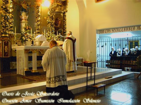 Začeci ove zajednice sežu u 1960. godinu kada je nakon nekoliko inicijalnih sastanaka njihov utemeljitelj, vlč. Pedro od Bezgrješne Muñoz, okupio španjolske djevojke sa željom podupiranja svećenika. 26. svibnja 1965., nadbiskup Barcelone msgr. Gregorio Modrego Casaus potvrdio je ovu zajednicu kao pobožnu udrugu. Kako se radilo o kongregaciji kontemplativnog života, bilo je nužno utemeljiti samostan (i to klauzurni) kako bi se mogli ispuniti ovi uvjeti. Tako je 1966 počeo život ove „oazističke“ zajednice. Krenulo se od skromne kuće u predgrađu Barcelone. Nakon nekoliko godina skromnijeg djelovanja, počeli su se lijevati pozivi iz Meksika, Francuske, Sjeverne Amerike, Afrike, Argentine, Urugvaja, Čilea, Dominikanske Republike, pa čak i Indije. Tako je ova zajednica brzo poprimila međunarodni karakter. Nekoliko biskupa dalo je svoje odobrenje njihovim Konstitucijama: nadbiskup Lefebvre, biskup Lazo i biskup Rangel. Oaza je njegovala prijateljske odnose s Bratstvom sv. Pija X., no o. Muñoz se nakon dugogodišnjeg neslaganja oko pitanja načina rješavanja krize u Crkvi, počeo razilaziti s Bratstvom. Na preporuku i poticaj FSSPX-ovog biskupa de Galarrete, skupina sestara je napustila Oazu i krenula s osnivanjem nove kongregacije pod okriljem FSSPX-a. No, većina sestara krenula je drugim putem. Od blagdana Preslavnog Imena Marijina, 21. Veljače 2007. Dva dana nakon sastanka s kardinalom Hoyosom, Oaza je Pontifikalnoj komisiji Ecclesia Dei uputila zahtjev za za priznavanjem. Uzevši u obzir njihovo jasno usmjerenje vjernosti Crkvi i Tradiciji, 29. lipnja 2007. Oaza je priznata kao redovnička zajednica papinskog prava i nalazi se pod nadležnošću Papinskog povjerenstva Ecclesia Dei.